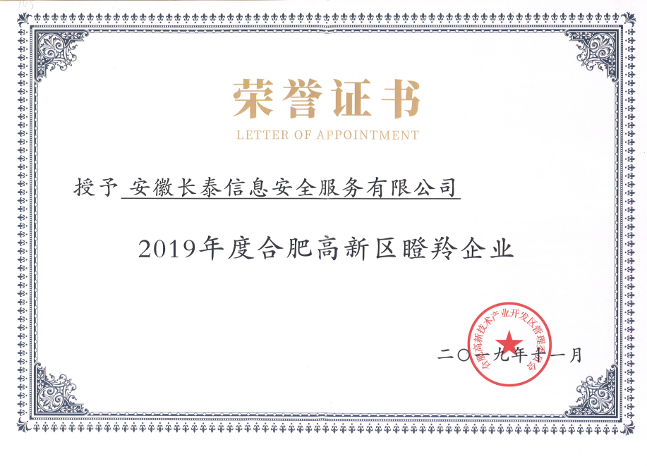 2019年,11月20日,合肥高新区2019年高成长企业榜单正式发布,高新区共认定了502家高成长企业,其中雏鹰企业275家、瞪羚培育企业72家、瞪羚企业149家、潜在独角兽企业3家、独角兽企业1家、平台型龙头企业2家。作为其中的高科技企业——安徽星空在线-星空在线(中国)成功入选瞪羚企业榜单。